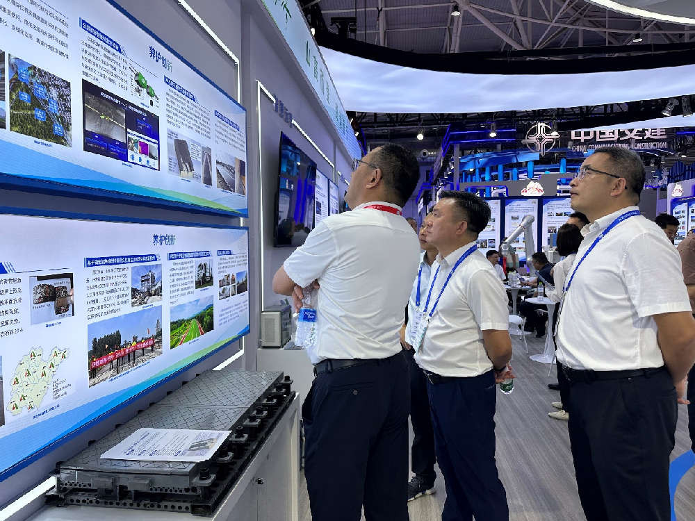 大會期間,公司在山東高速集團“智慧養護”板塊分別展示了山東高速基礎設施智慧監測與運維大數據平臺、移動化監測體系裝備、隧道智能巡檢機器人、UHPC成套制備及應用技術、基于微波加熱的高摻量耐久性再生瀝青混合料成套技術、中小跨徑橋梁PUC材料無縫伸縮縫技術等先進四新技術成果,吸引了相關領導、學者以及展商的駐足詢問,公司科研人員圍繞技術特點、產品參數、應用場景和效果進行了詳細介紹,受到了與會人員的一致好評和高度贊賞。